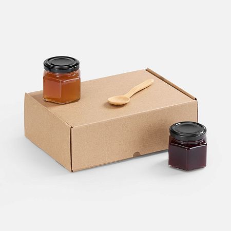 коробка - микрогофрокартон; баночки - стекло, жесть; ложка - бамбук