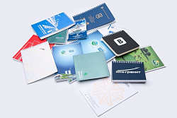 Полиграфия это отпечатанные визитки, листовки, буклеты, каталоги, календари, открытки, пакеты и многое другое. Также такое нанесение используется при брендировании подарков: «цифрой» печатают полиграфические вставки в бейджи, термостаканы и циферблаты часов, форзацы и вклейки в индивидуальные ежедневники.