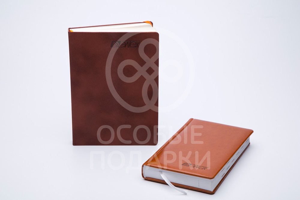 Заказ для "Особых Подарков" на синие ежедневники и черные термосы с удобной крышкой-кружкой; далее - лаконичные ежедневники коричневого цвета.
