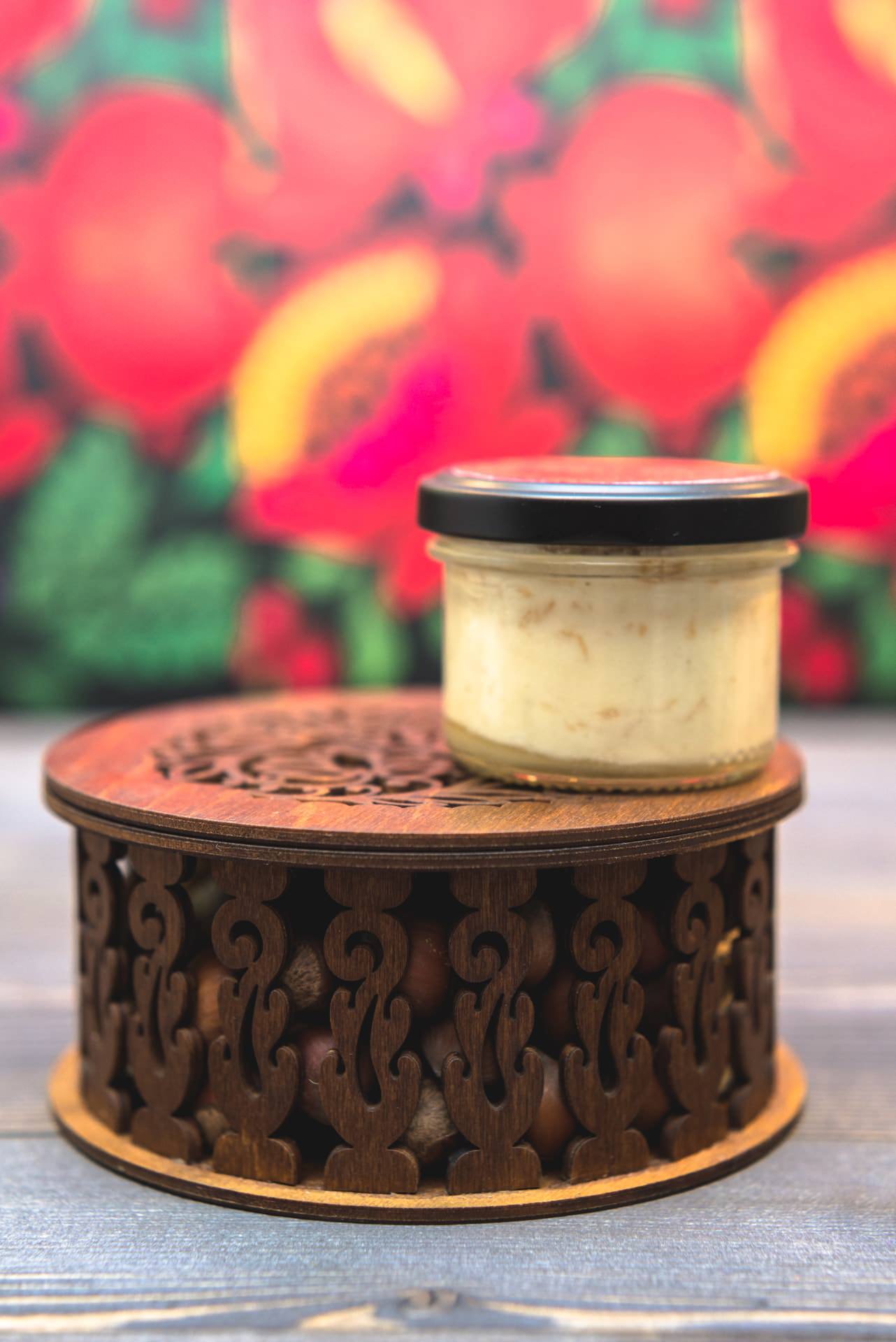 Нанесение (включено в стоимость): открытка, наклейка на мёд-суфле, крышка шкатулки с вашим лого.