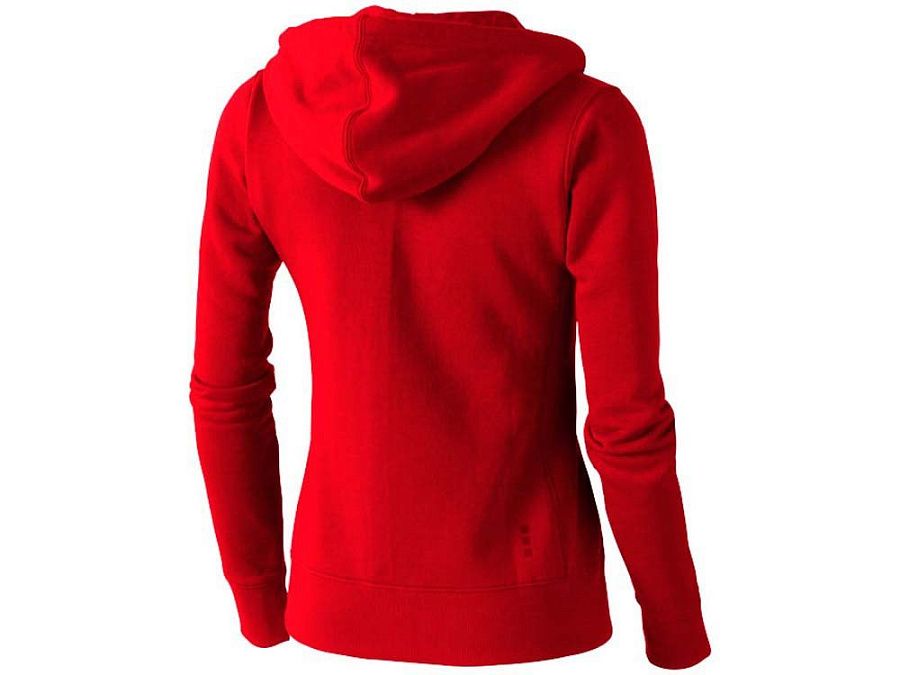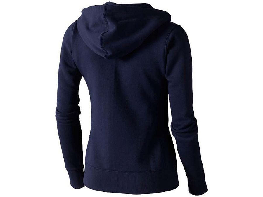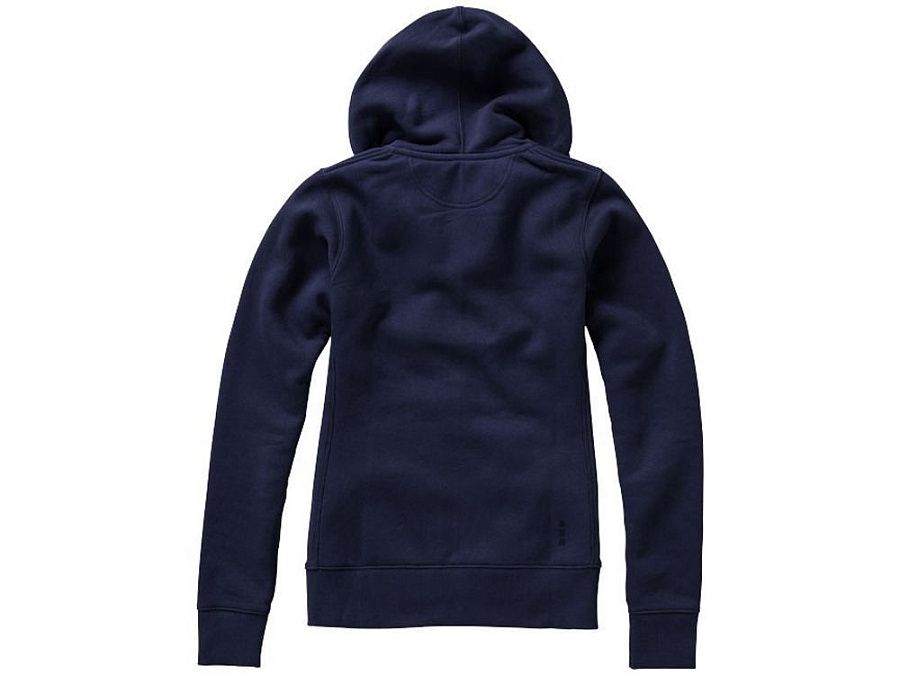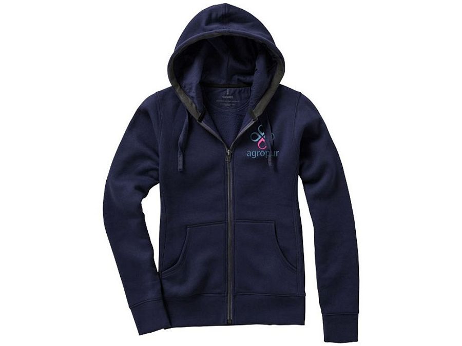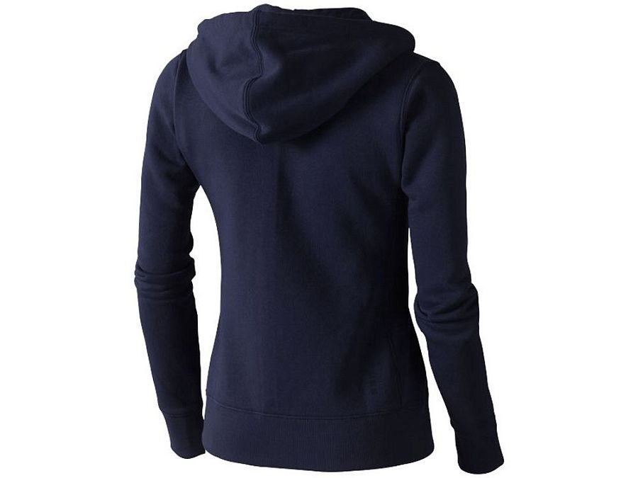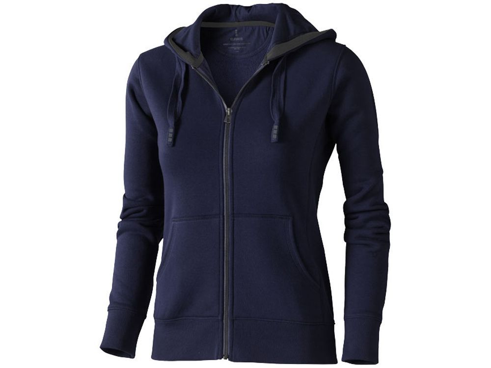 Женский свитер Arora с капюшоном и застежкой-молнией на всю длину. Стандартный покрой. Резинка 2х2 на боковых вставках, поясе и манжетах. Карман кенгуру. Мужская и женская модели с завязками на капюшоне. Подкладка внутри капюшона. Атласная лента внутри горловины. Принт лого сзади в тон изделия. Серебристые люверсы с лого. Ворсистый внутри для мягкости, тепла и комфорта. Трикотаж: 80% хлопок и 20% полиэстер, чесаная внутренняя сторона. 300 г/м².