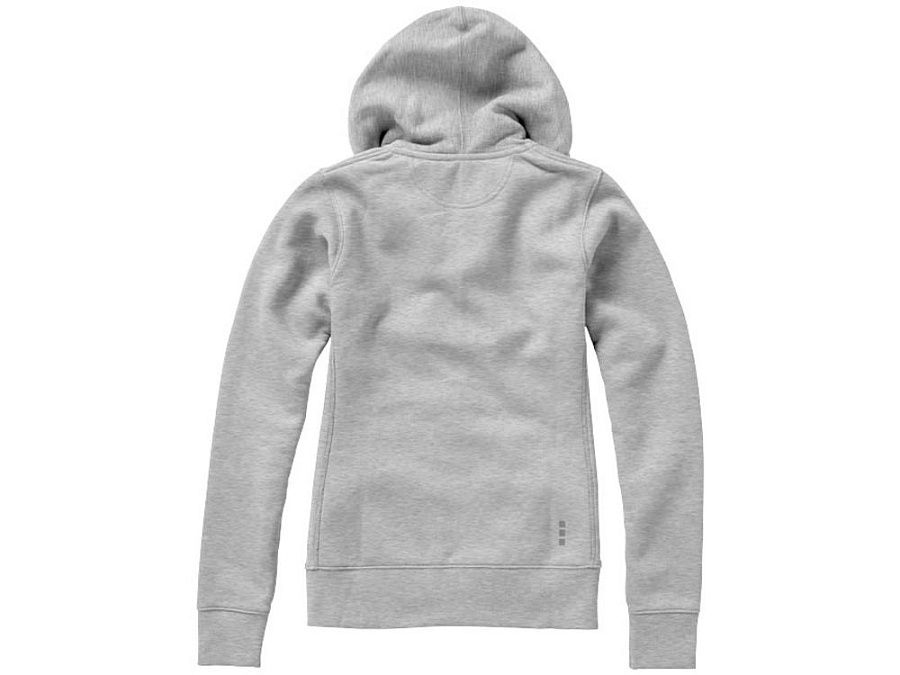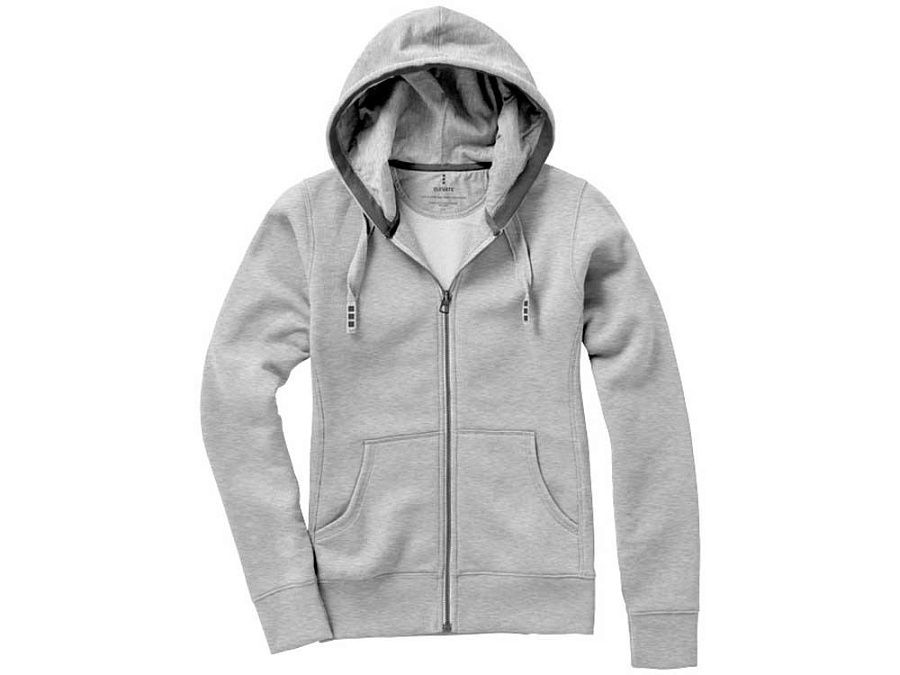 Женский свитер Arora с капюшоном и застежкой-молнией на всю длину. Стандартный покрой. Резинка 2х2 на боковых вставках, поясе и манжетах. Карман кенгуру. Мужская и женская модели с завязками на капюшоне. Подкладка внутри капюшона. Атласная лента внутри горловины. Принт лого сзади в тон изделия. Серебристые люверсы с лого. Ворсистый внутри для мягкости, тепла и комфорта. Трикотаж: 80% хлопок и 20% полиэстер, чесаная внутренняя сторона. 300 г/м².