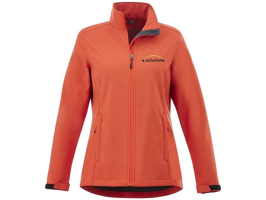 Женская куртка софтшел Maxson. Универсальный покрой. Передняя застежка на обратной молнии. Внутренняя планка. Карманы для рук на молнии. Эргономичные рукава. Усиленные локти. Молния легкого скольжения. Эластичная ткань из 100% полиэстера, склеенная с микрофлисом из 100% полиэстера с водонепроницаемой дышащей мембраной и водоотталкивающей отделкой. 270 г/м2.