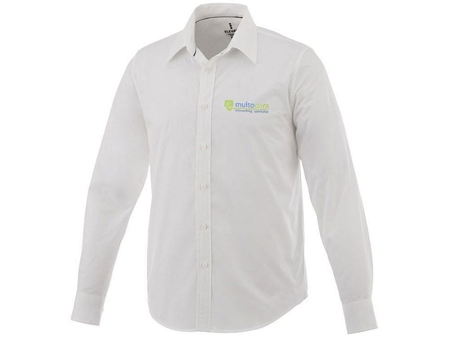 Рубашка с длинными рукавами Hamell. Скрытая пуговица под воротником. Стрейч-ткань. Регулируемый манжет на одной пуговице. Атласная окантовка внутренней части горловины. Гравированные пуговицы в цвет изделия. Комфортный ярлык-трансфер на изделии. Поплин из 96% хлопка и 4% эластана. 118 г/м².
