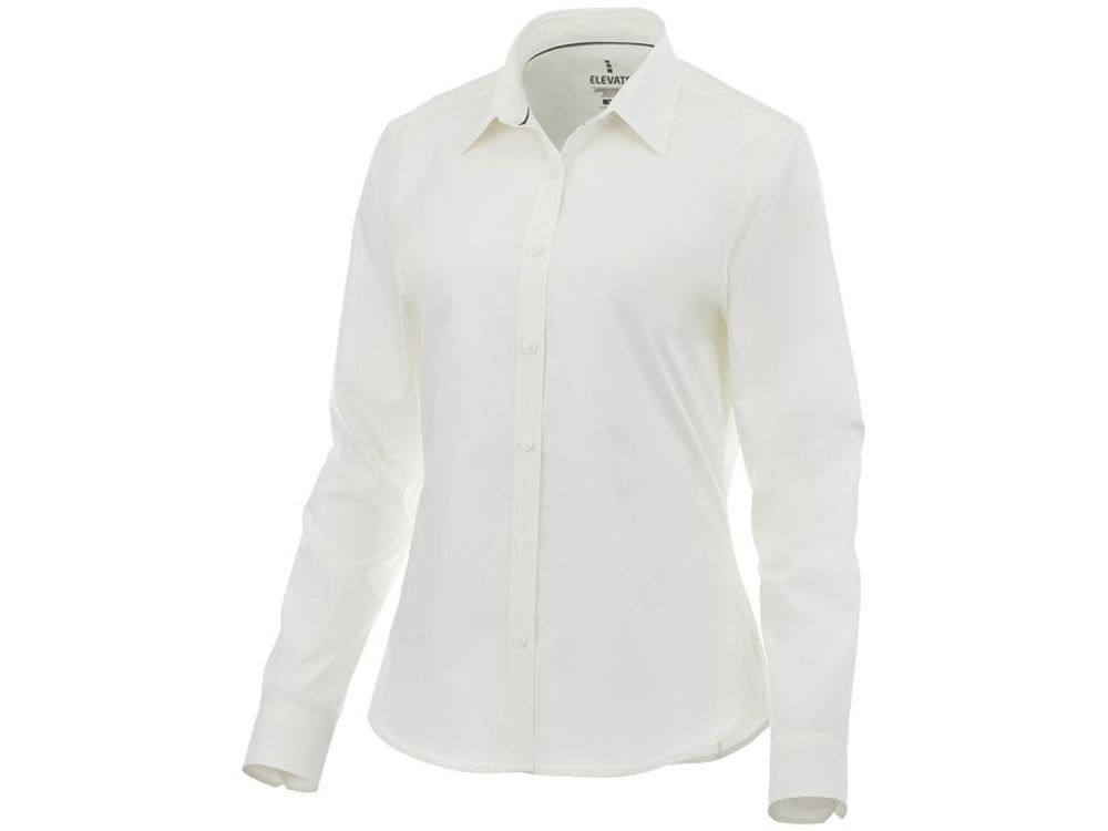 Женская рубашка с длинными рукавами Hamell. манжет на одной пуговице. Атласная окантовка внутренней части горловины. Швы моделирующие фигуру и приталенный крой. Гравированные пуговицы в цвет изделия. Комфортный ярлык-трансфер на изделии. Поплин из 96% хлопка и 4% эластана. 118 г/м².