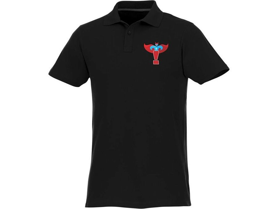 Мужское поло Helios с коротким рукавом. Отрезной-отрывной ярлык для комфорта. Воротник гладкой вязкой в рубчик. Планка с двумя пуговицами. Двойная строчка на воротнике и внизу изделия. Пуговицы в цвет изделия. Полоска на горловине в контрастном цвете. Трикотаж Piqué, 100 % хлопок. 180 г/м².