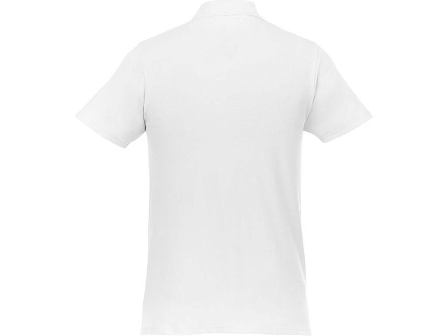 Мужское поло Helios с коротким рукавом. Отрезной-отрывной ярлык для комфорта. Воротник гладкой вязкой в рубчик. Планка с двумя пуговицами. Двойная строчка на воротнике и внизу изделия. Пуговицы в цвет изделия. Полоска на горловине в контрастном цвете. Трикотаж Piqué, 100 % хлопок. 180 г/м².