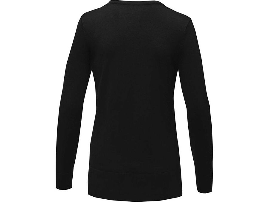 Женский пуловер Stanton. V-образный вырез. Воротник из гладкого трикотажа. С манжетами из гладкого трикотажа в рубчик. С подшивкой из гладкого трикотажа в рубчик. Удлиненный задний подол с боковыми прорезями. Атласная лента на воротнике Основная этикетка нанесена на ткань методом термоприклеивания без неудобных пришитых ярлыков. Придающие форму швы и зауженная талия для ровного прилегания.