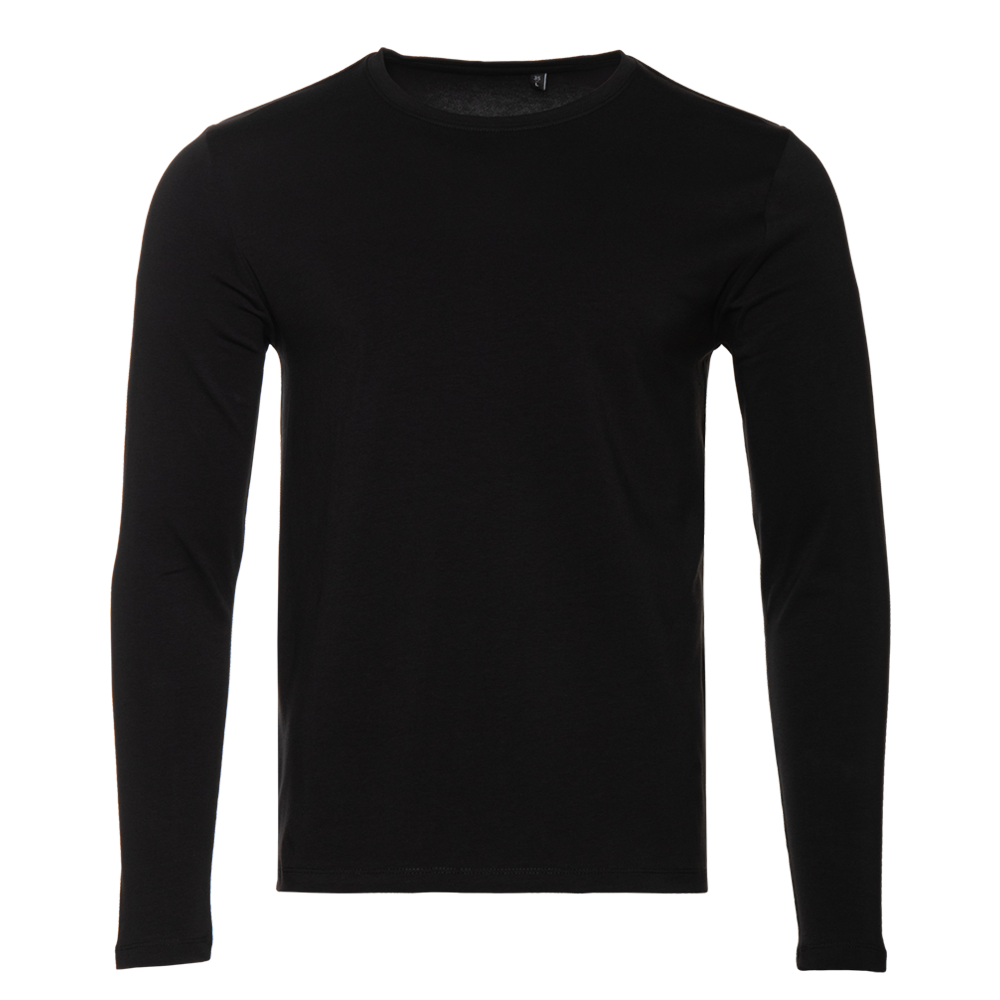 Универсальная футболка прямого силуэта с округлым воротом и длинным втачным рукавом. Плечевые швы и шов горловины усилены настрочной бейкой из основного полотна.