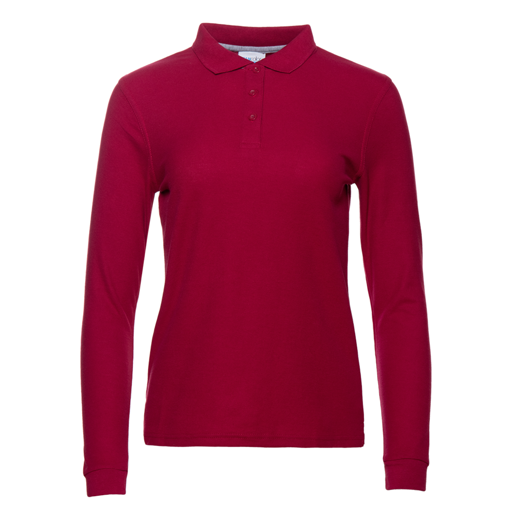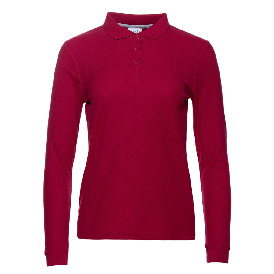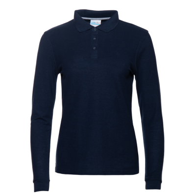 Женская рубашка поло приталенного силуэта с отложным воротником, длинным рукавом и застежкой на пуговицы.