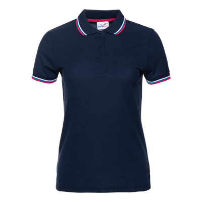Женская модель приталенного кроя с отложным воротником, втачным рукавом и застежкой на пуговицы. Воротник и манжет оформлены тесьмой в цвете «триколор».
