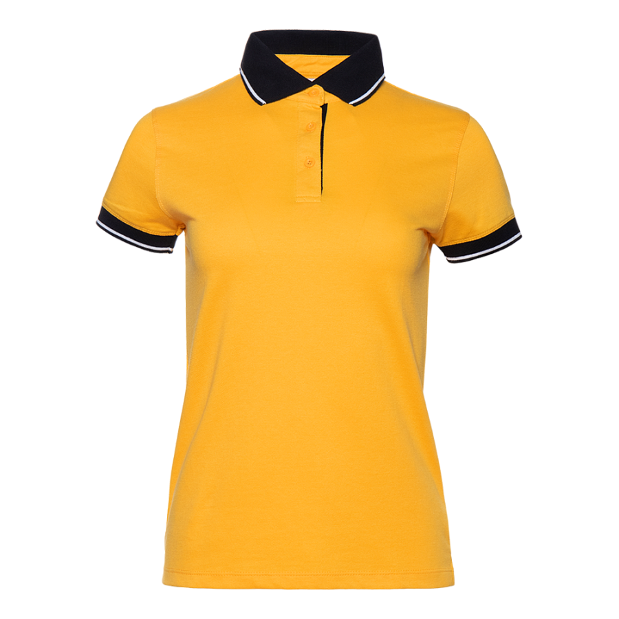 Женская рубашка поло приталенного силуэта с контрастным отложным воротником и манжетом, втачным коротким рукавом и застежку на пуговицы. Асимметричный крой гарантирует свободу движения и защиту спины от продувания ветром.