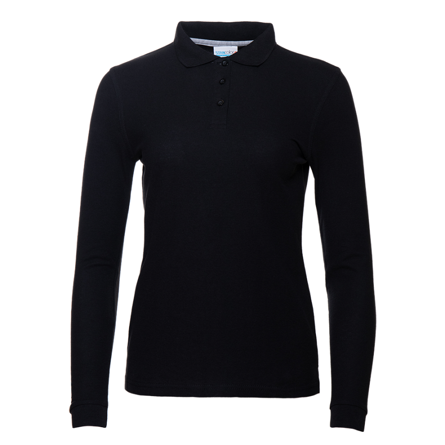 Женская рубашка поло приталенного силуэта с отложным воротником, длинным рукавом и застежкой на пуговицы.