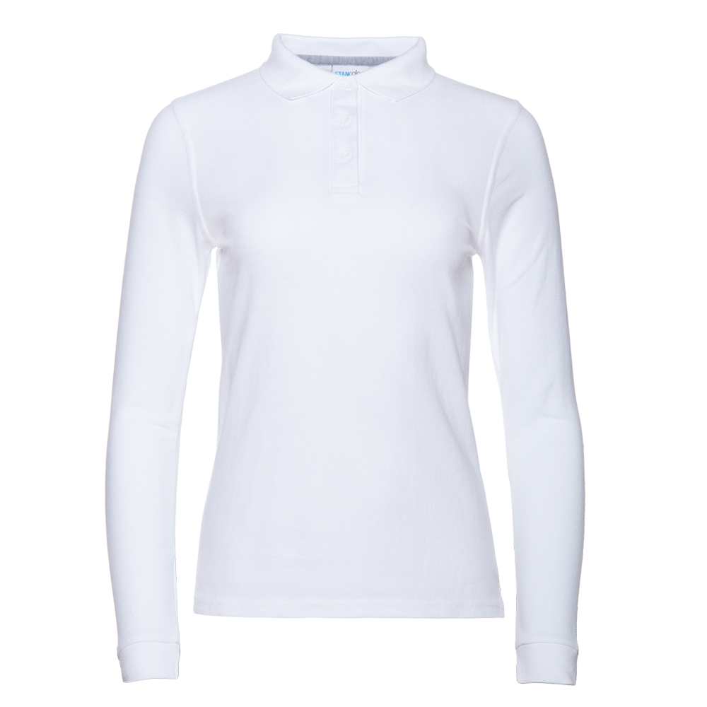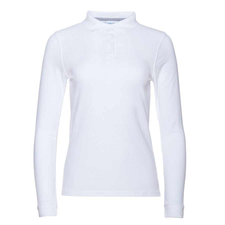 Женская рубашка поло приталенного силуэта с отложным воротником, длинным рукавом и застежкой на пуговицы.