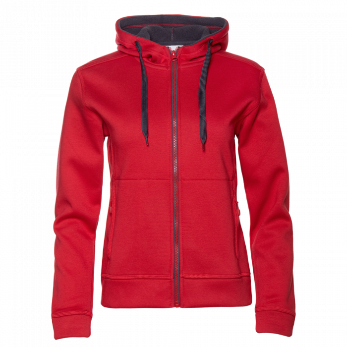 Женская толстовка прямого силуэта с капюшоном комфортной глубины, втачным рукавом, прорезным карманов и застежкой на контрастную молнию. Капюшон дополнен плоским шнурком для регулировки прилегания, манжет и низ изделия выполнены из основного полотна.