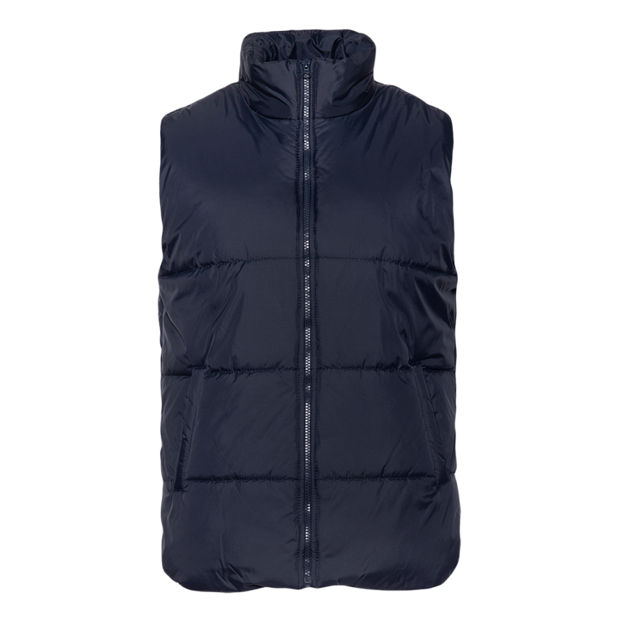 Универсальный жилет прямого силуэта с широкой горизонтальной стежкой, высоким воротником-стойкой, глубоким прорезным карманом и застежкой на молнию. Благодаря классическому лаконичному крою модель станет стильным дополнением как к мужскому, так и к женскому гардеробу.