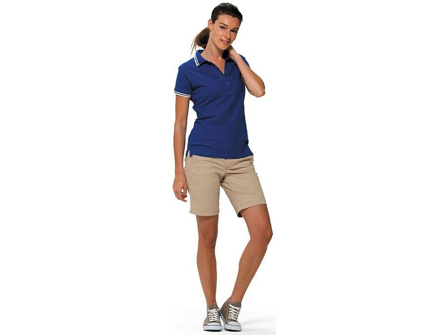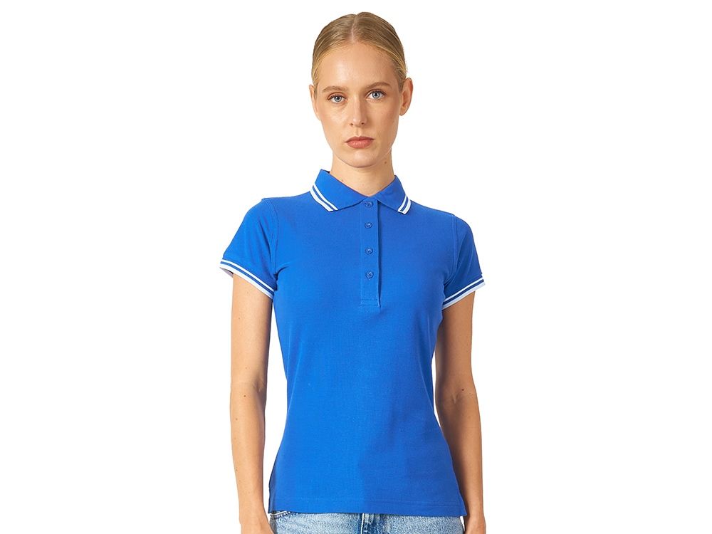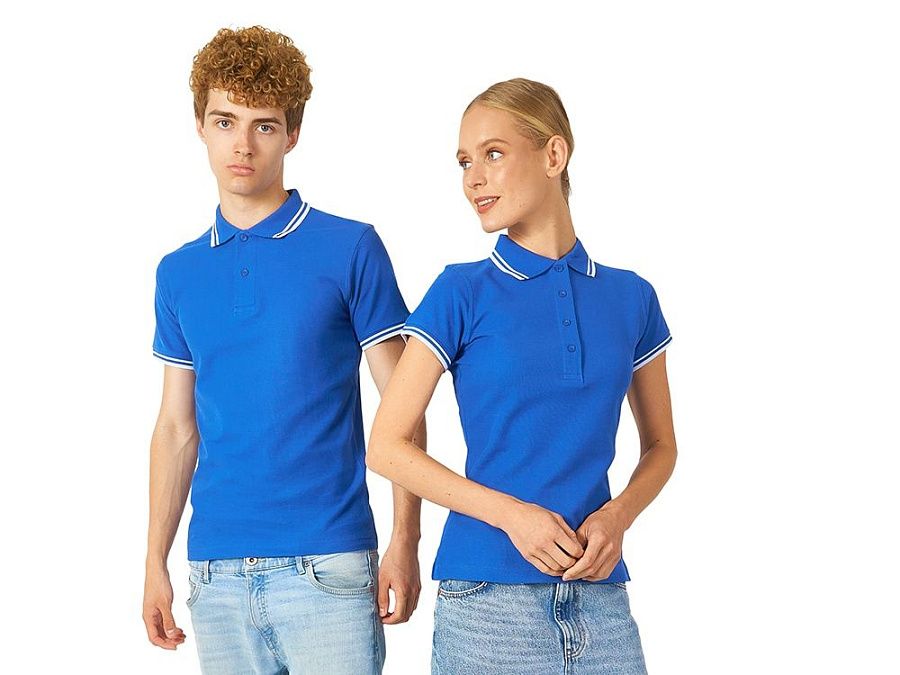 Рубашка-поло Erie с окантовкой. Воротник и манжеты резинка 1х1. Мужская модель с двумя пуговицами, женская - 4 пуговицы в тон изделия. Обшивка внутри воротника. Женская модель с разрезами по бокам. Женская модель приталена. Пике, 100% чесаный хлопок. Плотность 180 г/м2.