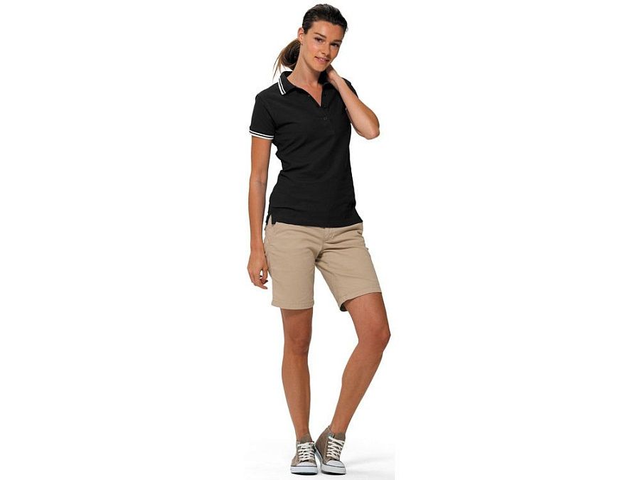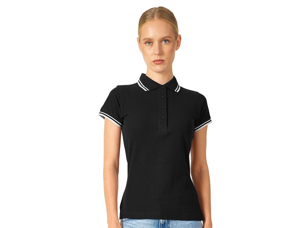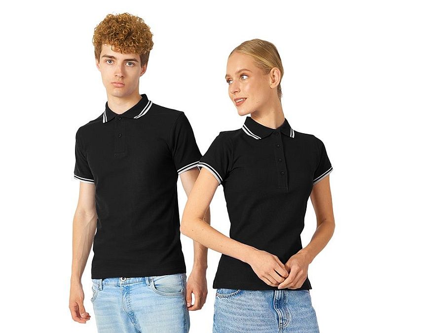 Рубашка-поло Erie с окантовкой. Воротник и манжеты резинка 1х1. Мужская модель с двумя пуговицами, женская - 4 пуговицы в тон изделия. Обшивка внутри воротника. Женская модель с разрезами по бокам. Женская модель приталена. Пике, 100% чесаный хлопок. Плотность 180 г/м2.