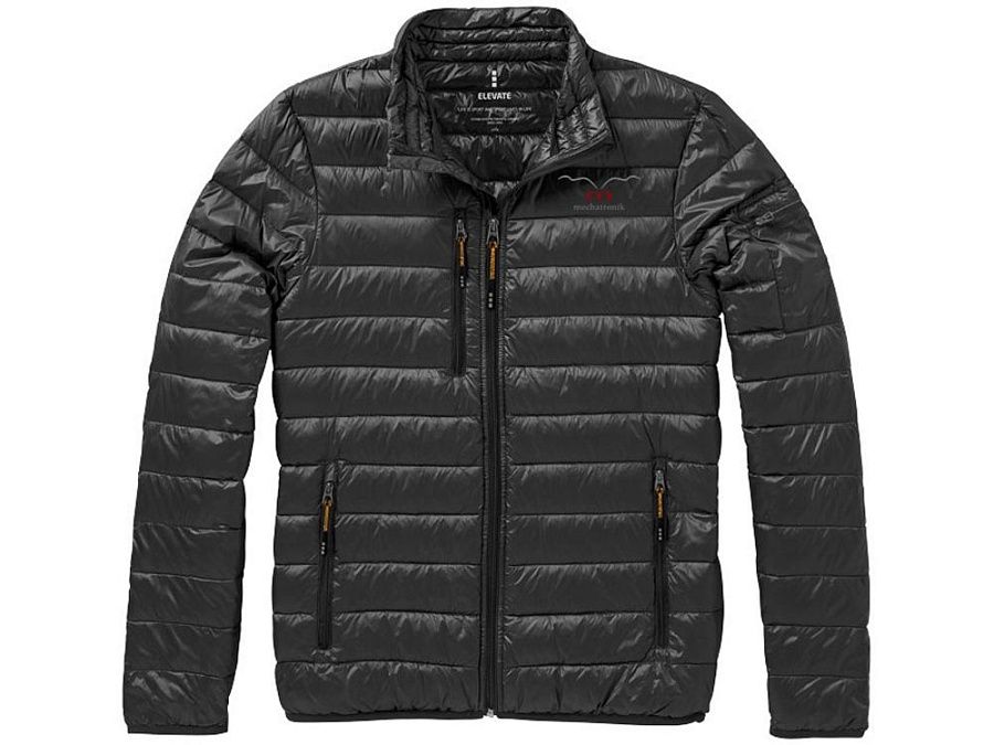 Легкая куртка Scotia. Стандартный покрой. Ткань не пропускает пух. Карманы для рук и нагрудный на молнии. Карман на рукаве на молнии можно использовать для нанесения. Резинка на манжетах и внизу куртки. Ремешки на собачку (второй комплект в цвете антрацит). Внутренний противоветровой клапан и защита подбородка. Ткань дышащая, ветронепроницаемая и влагоотталкивающая. Отражающий лого сзади. Легкий пуховик. Ткань из 100% нейлона с матовым и блестящим водоотталкивающим покрытием, 20D. 80% пух и 20% перо. 115 г/м².