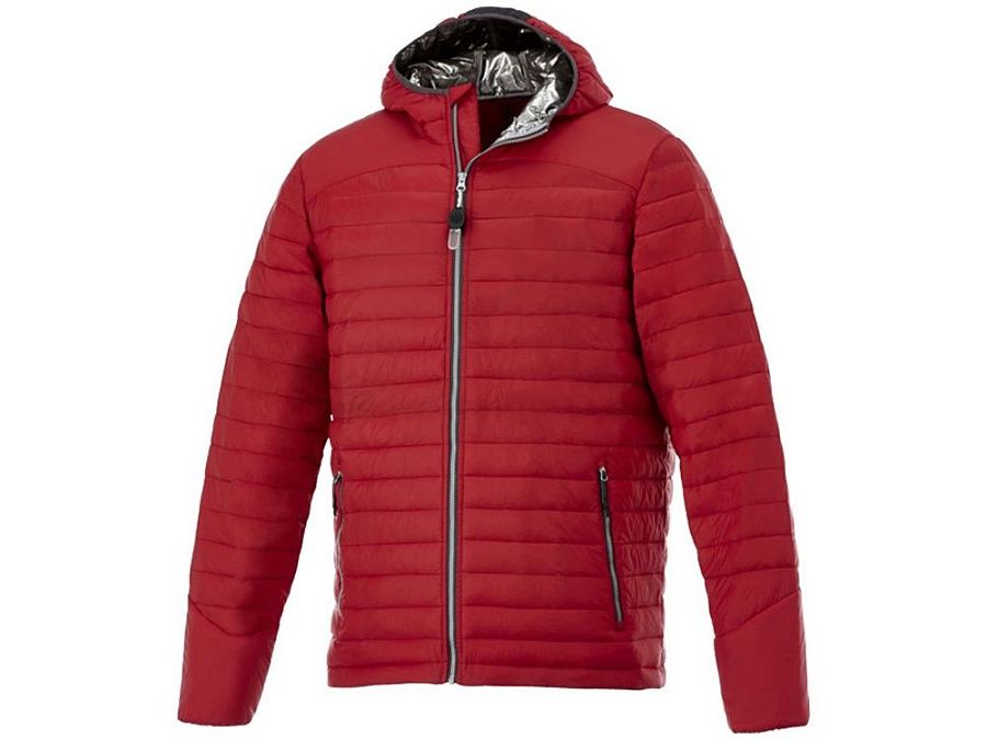 Утепленная куртка Silverton. Упаковывается в нижний левый карман. Внутренний выход для медиапроводов. Эластичные завязки с фиксаторами. Эластичные манжеты. Манжеты-резинки контрастного цвета. Эргономичные рукава. Молния по центру с отражающей лентой. Карманы для рук на молнии. Петелька-вешалка. Комфортный ярлык-трансфер на изделии. 100% нейлон, матовый блеск 380Т, влагоотталкивающий, не пропускает пух. Наполнитель - 100% полиэстер искусственный пух. 38 г/м².
