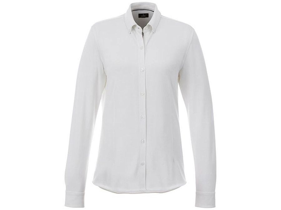 Женская рубашка Bigelow из пике с длинным рукавом. Воротник из ткани изделия. Стрейтч-ткань. Регулируемый манжет на одной пуговице. Воротник на пуговицах. Швы моделирующие фигуру и приталенный крой. Атласная окантовка внутренней части горловины. Гравированные пуговицы в цвет изделия. Тканая метка. Двойное трикотажное пике, 95% хлопок и 5% эластан. 200 г/м².