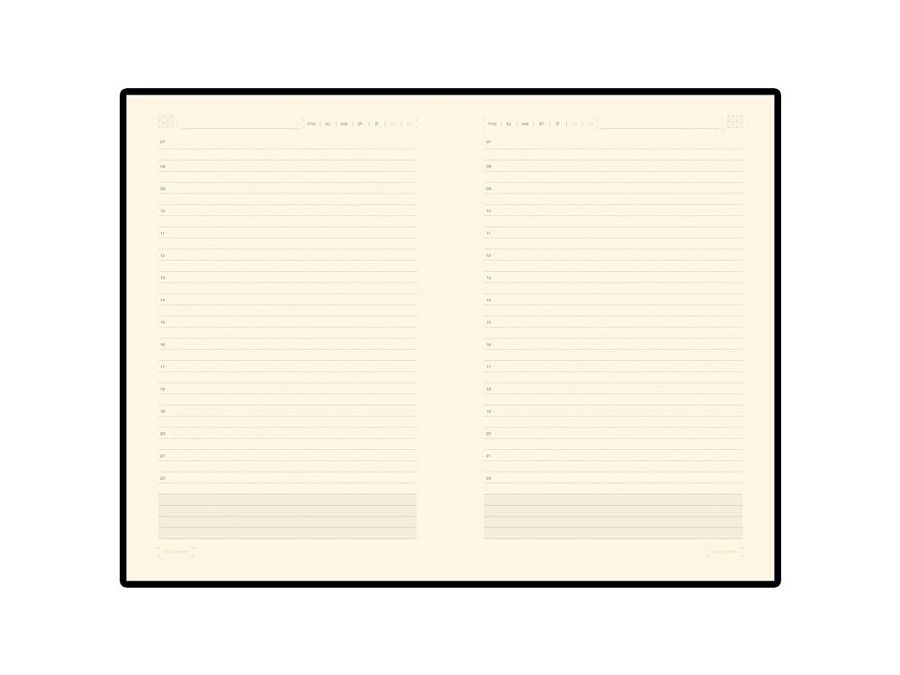 В ежедневнике «Zenith» есть полезная справочная информация, а также 272 страницы для записи идей, мыслей и составления рабочих планов. Есть закладка - тесьма из шелка, она интегрирована в обложку и может использоваться как хлястик. Для изготовления страниц используется качественный бежевый офсет повышенной плотности (70 г/кв м), которая производится в Японии и подходит для всех видов чернил. На последнем развороте обложки закреплен плотный черный конверт для визитных карточек.