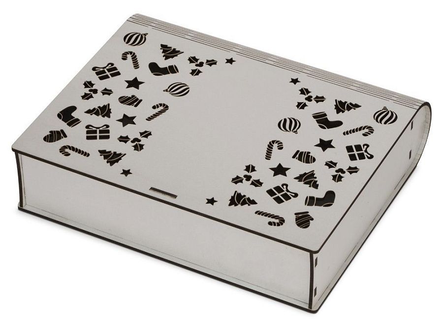 Подарочная коробка в виде книги с новогодним дизайном удивит получателя подарка своим запоминающимся дизайном. Внутренний размер 21,5 х 13,5 х 6 см.