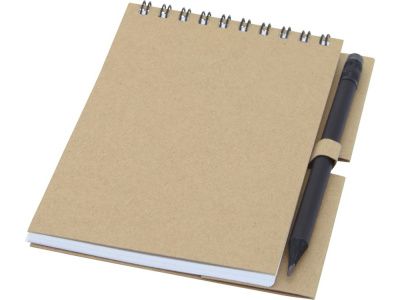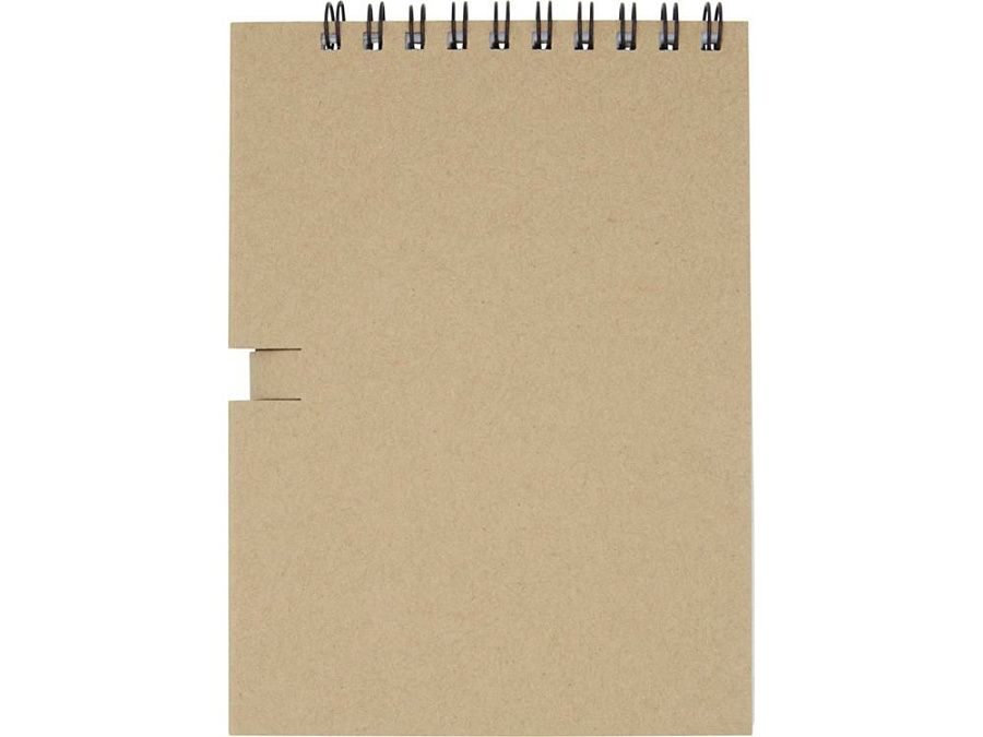 Блокнот на гребне из 40 листов плотностью 80 г/м², обложка и листы изготовлены из переработанной бумаги, соответствующей FSC, без декора. В комплект входит черный карандаш. Блокнот изготовлен в Италии.