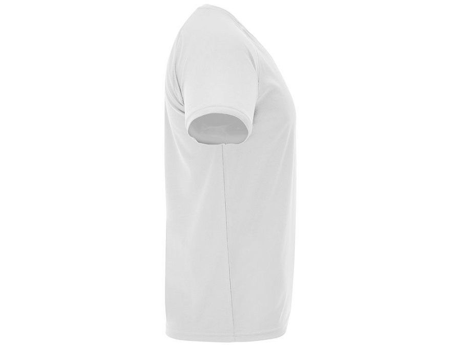 Спортивная футболка с коротким рукавом реглан. Круглый вырез горловины с отделкой плоским швом. Рукав сложного кроя для обеспечения дополнительного удобства при занятиях спортом. Отделка плоским швом с застилом по пройме и рукавам.