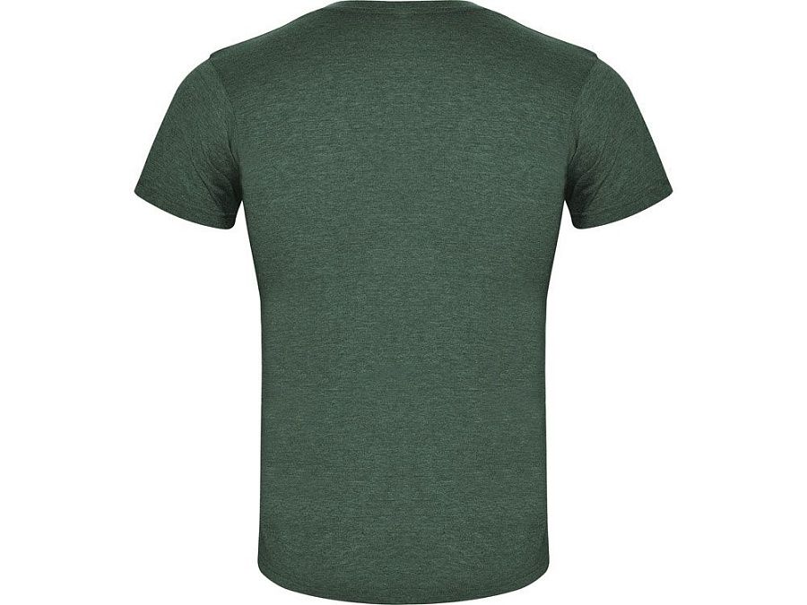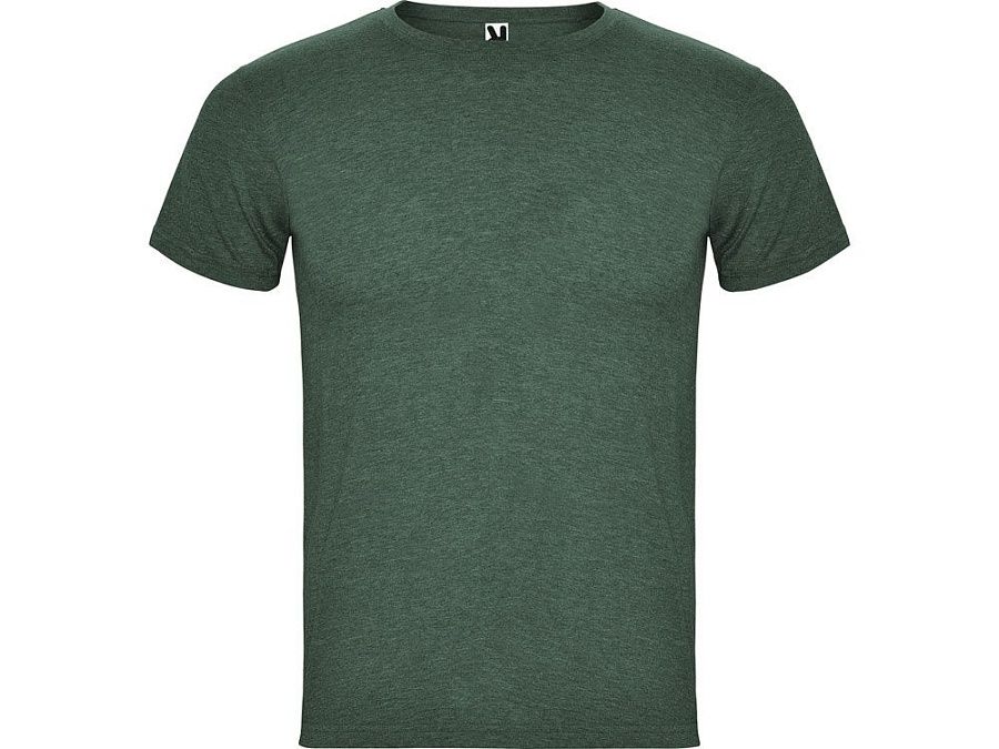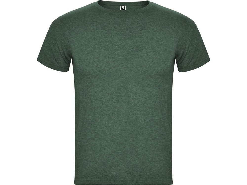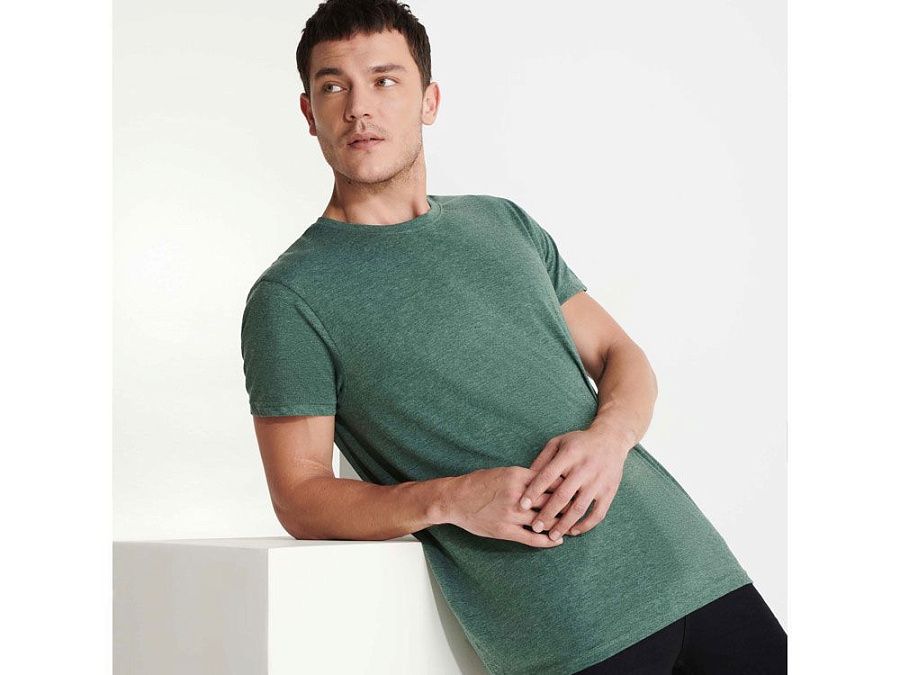 Футболка без боковых швов с коротким рукавом в меланжевом эффекте. Риб горловины 1х1 дополнительно укреплен двойной строчкой.