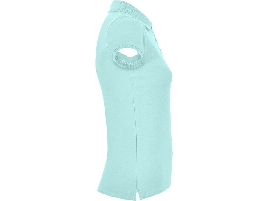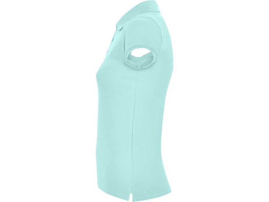Поло с коротким рукавом для женщин приталенного силуэта. Воротник и манжеты из риба 1х1, отделка горловины внутри тесьмой. Элегантная планка застегивается на 3 пуговицы. Разрезы в боковых швах.