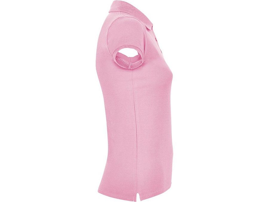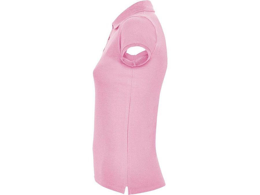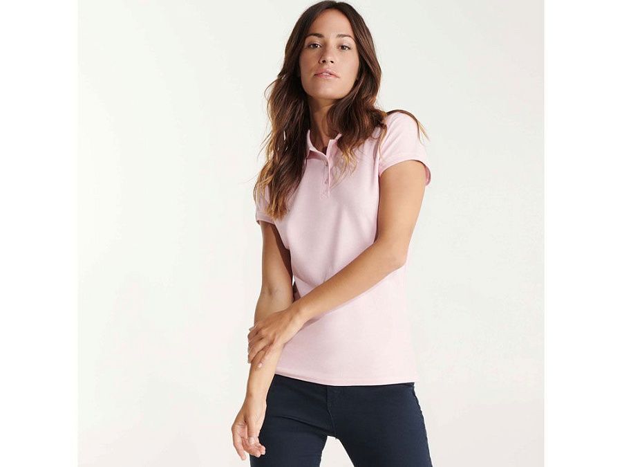 Поло с коротким рукавом для женщин приталенного силуэта. Воротник и манжеты из риба 1х1, отделка горловины внутри тесьмой. Элегантная планка застегивается на 3 пуговицы. Разрезы в боковых швах.