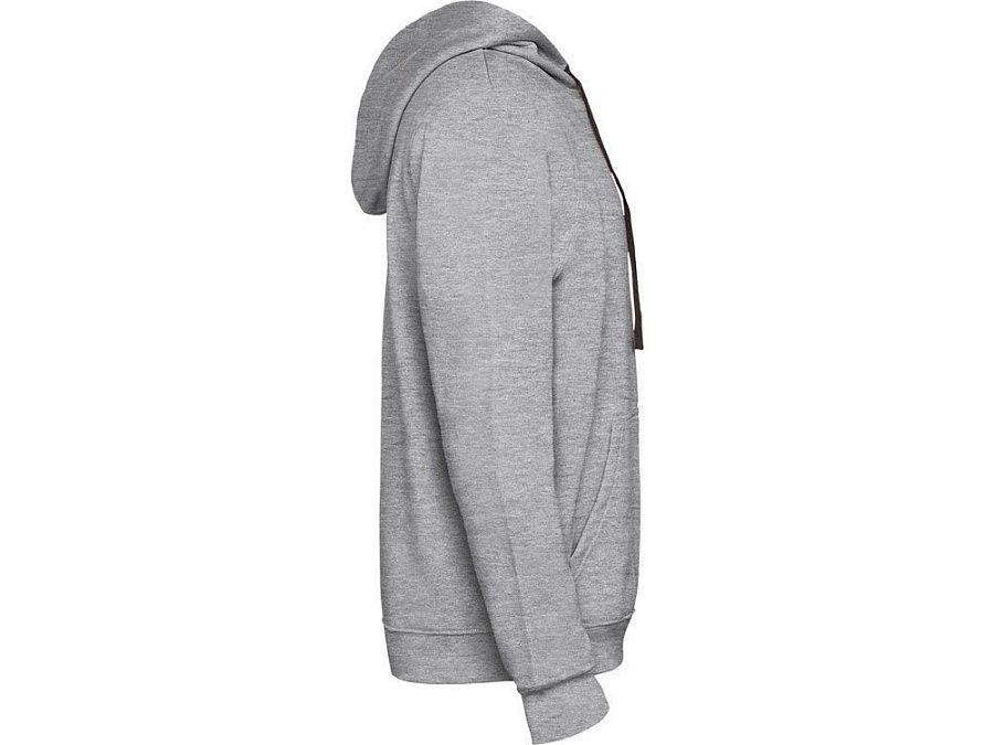 Худи с капюшоном и шнурками. Отделка горловины спинки внутри тесьмой, Риб 1х1 по низу изделия и манжетам. Карман кенгуру.