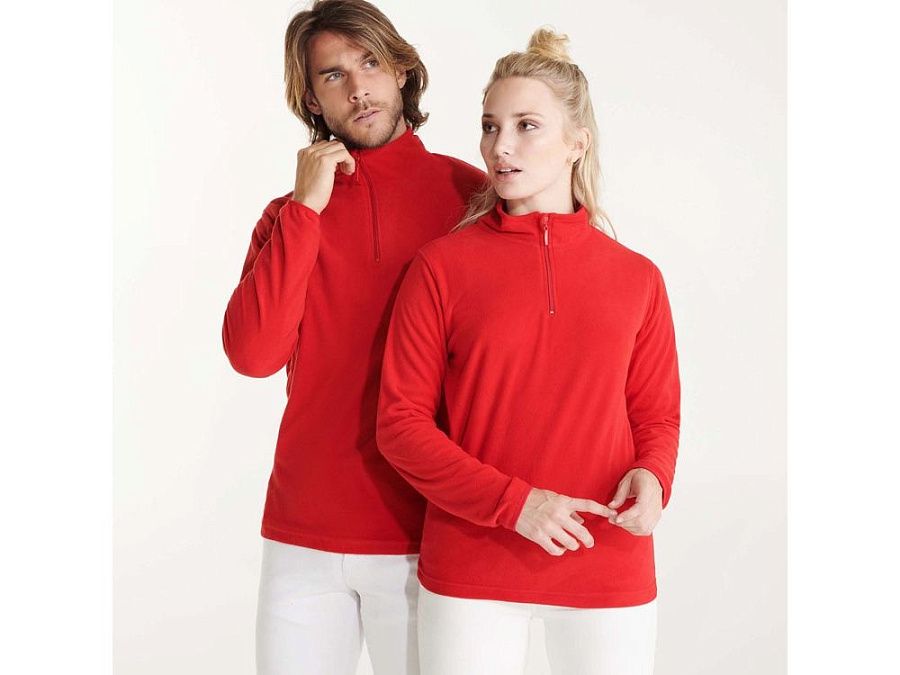 Мужской свитшот из микрофлиса ворот стойка застегивается на молнию в тон. Низ рукавов обработан резинкой в тон.