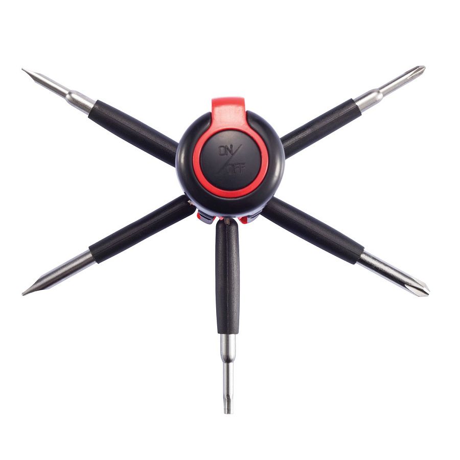 Набор отверток с подсветкой 6 в 1 включает в себя: 2 крестовые отвертки, 2 плоские отвертки, отвертку в форме звезды и 4 белых светодиода, которые обеспечат хорошую видимость во время работы.