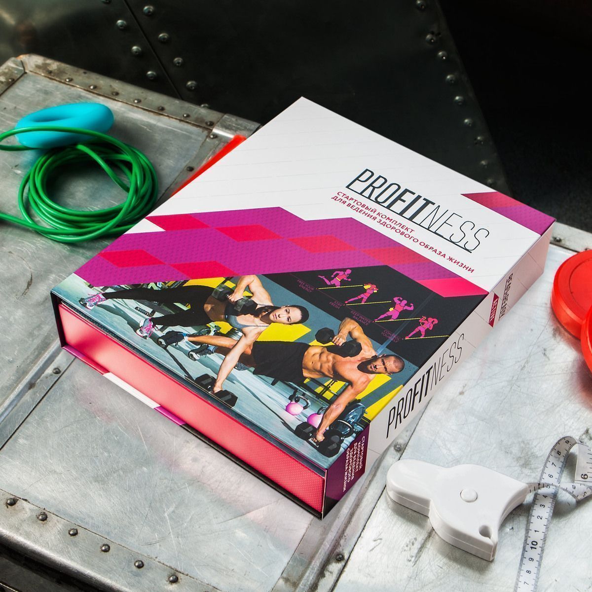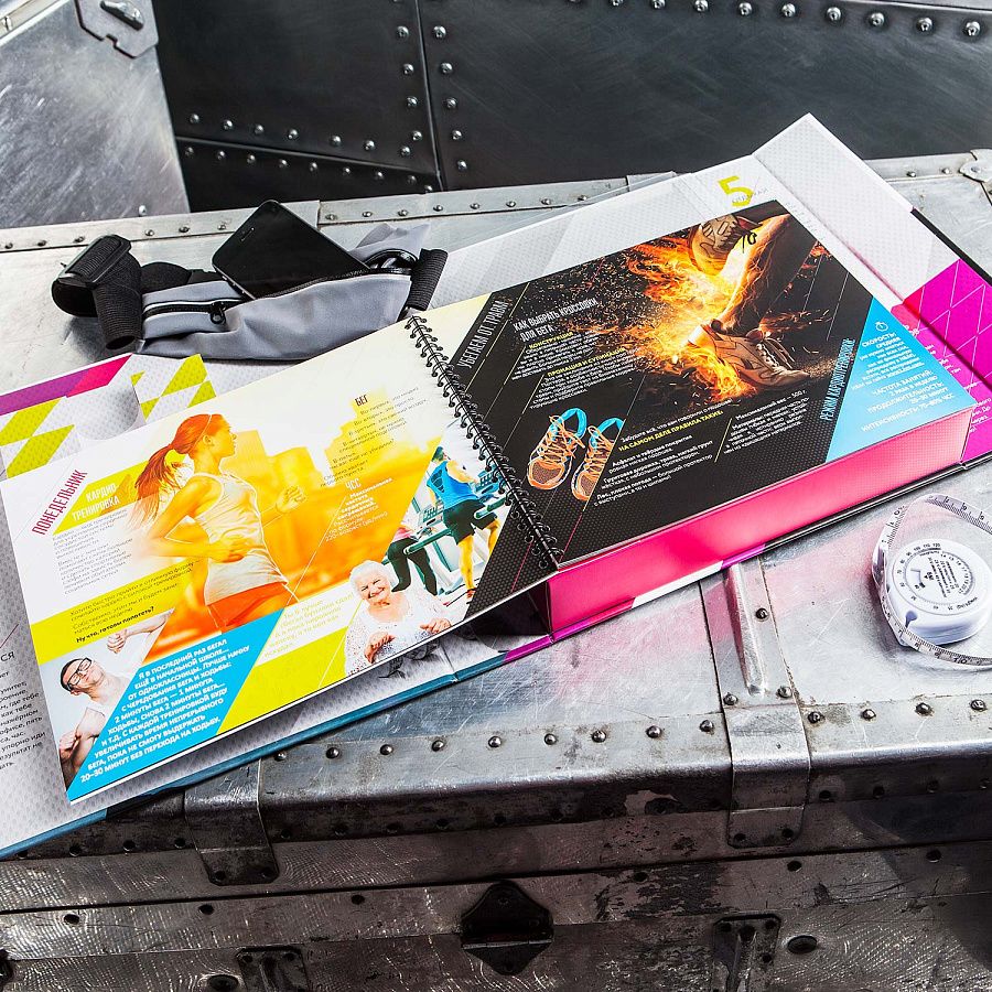 Концептуальный набор для ведения здорового образа жизни. Он подойдёт как новичкам, так и заядлым фанатам спорта, поскольку содержит полезные советы и качественные фитнес-предметы. Предлагается готовая программа тренировок, а также комментарии и рекомендации, затрагивающие важные аспекты занятий.
