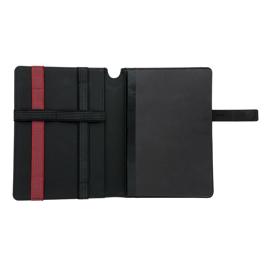 Обложка Kyoto формата A5 внутри представляет собой удобный органайзер для хранения гаджетов, ручек и прочих всегда необходимых под рукой мелочей. Универсальные прорезиненные эластичные ленты подойдут для любых гаджетов диагональю до 5,8 дюймов, например, для iPhone 7+ или Galaxy S8. В блокноте 64 листа кремовой бумаги плотностью 80 г/м2. Зарегистрированный дизайн®