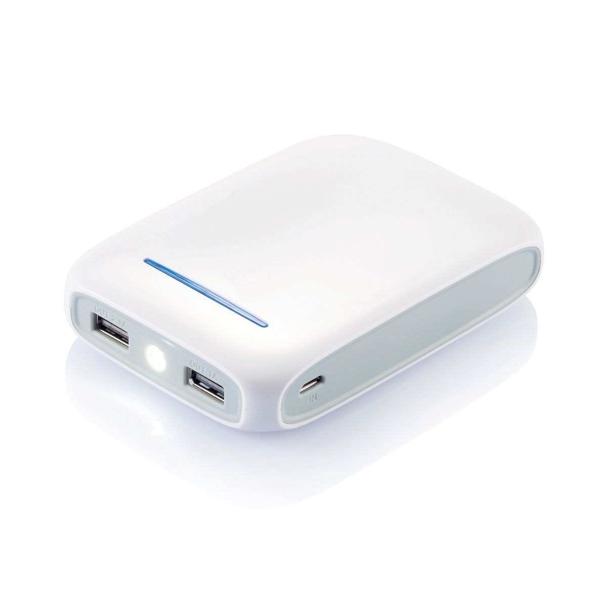 Мощное портативное зарядное устройство на 10 000 mAh с фонариком. Максимальная мощность на выходе 5V/2,1А и 5V/1А и на входе 5V/1,5А.