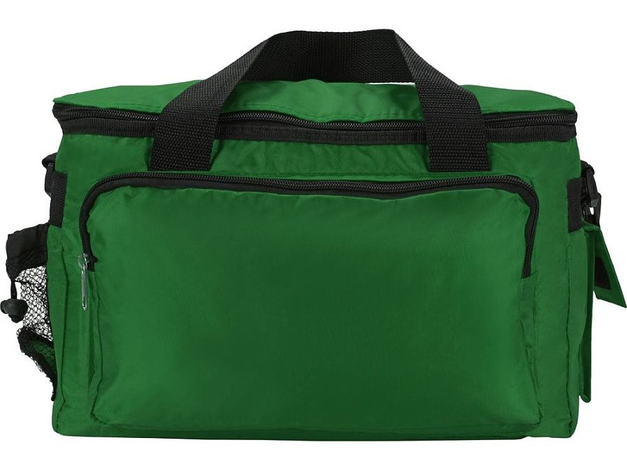 Вместительная сумка-холодильник (объем – 15 л.) «Камайоре» прекрасно подойдет не только для индивидуальных пикников, но даже и для доставки горячих продуктов (пиццы, например). С боков 2 кармана – один сетчатый с регулируемой затяжкой для бутылки. Другой для приборов, салфеток или других мелочей закрывается на липучку. Наружный слой сделан из полиэстера, на него может быть нанесена персонализация: имя владельца или логотип компании.