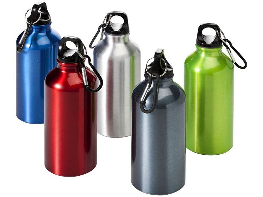 Бутылка для питья Oregon с карабином. Бутылка с одинарными стенками со съемной крышкой. Карабин не предназначен для лазанья. Объем – 400 мл. BPA Free Алюминий.
