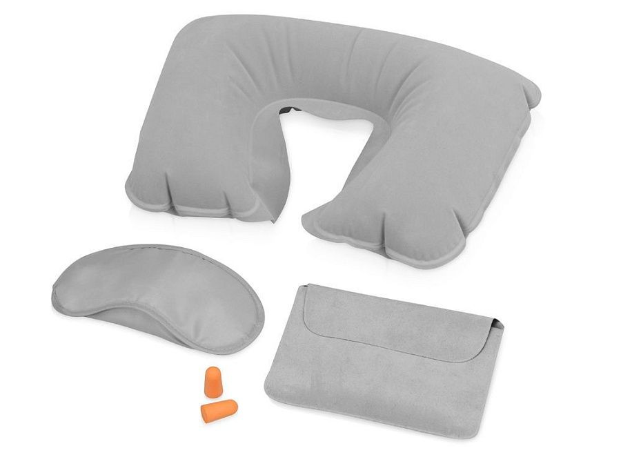 Замечательный дорожный набор включает в себя надувную подушку, маску на глаза и беруши, все это упаковано в специальный чехол. Приятная на ощупь поверхность набора обеспечит комфортный сон в любой обстановке.