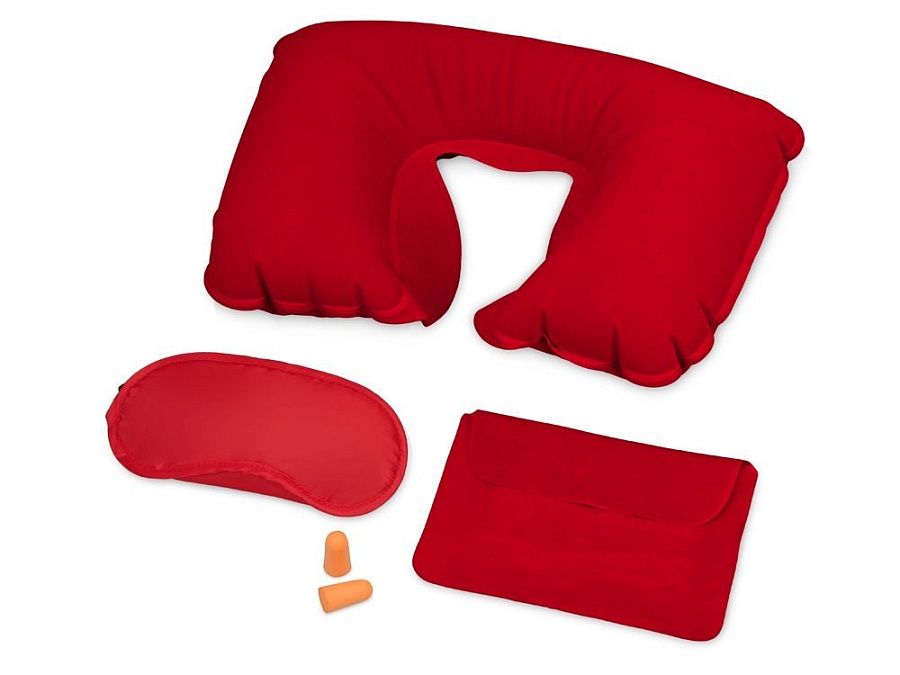 Замечательный дорожный набор включает в себя надувную подушку, маску на глаза и беруши, все это упаковано в специальный чехол. Приятная на ощупь поверхность набора обеспечит комфортный сон в любой обстановке.