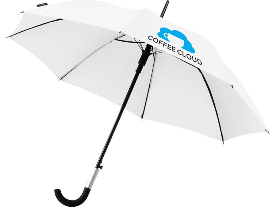 Автоматический зонт Arch 23". Эксклюзивный автоматический зонт. Металлическая трость и спицы. Специальная ручка, позволяющая вешать зонт на стол. Прорезиненная изогнутая ручка с алюминиевыми деталями. Чехол под цвет зонта. Эпонж полиэстер.