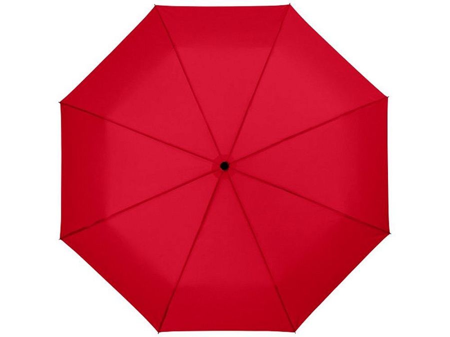 Зонт Wali трехсекционный 21" с автоматическим открытием. Зонт 21" с металлическим стержнем, спицами из стекловолокна и пластиковой ручкой с прорезиненным покрытием. В комплекте чехол. Полиэстер эпонж.