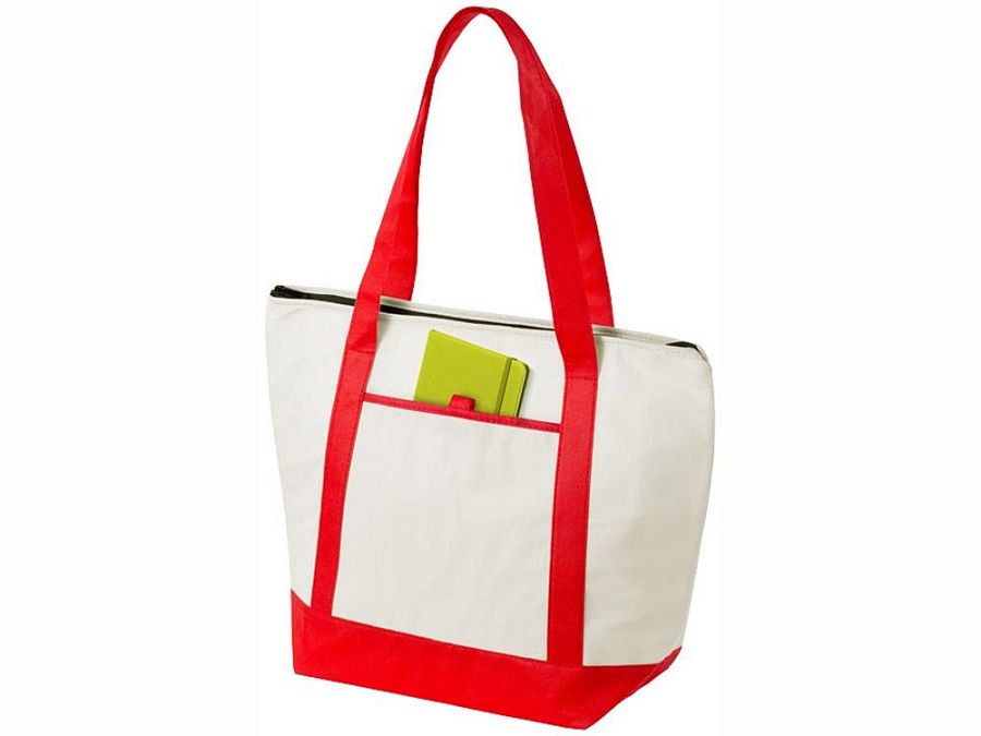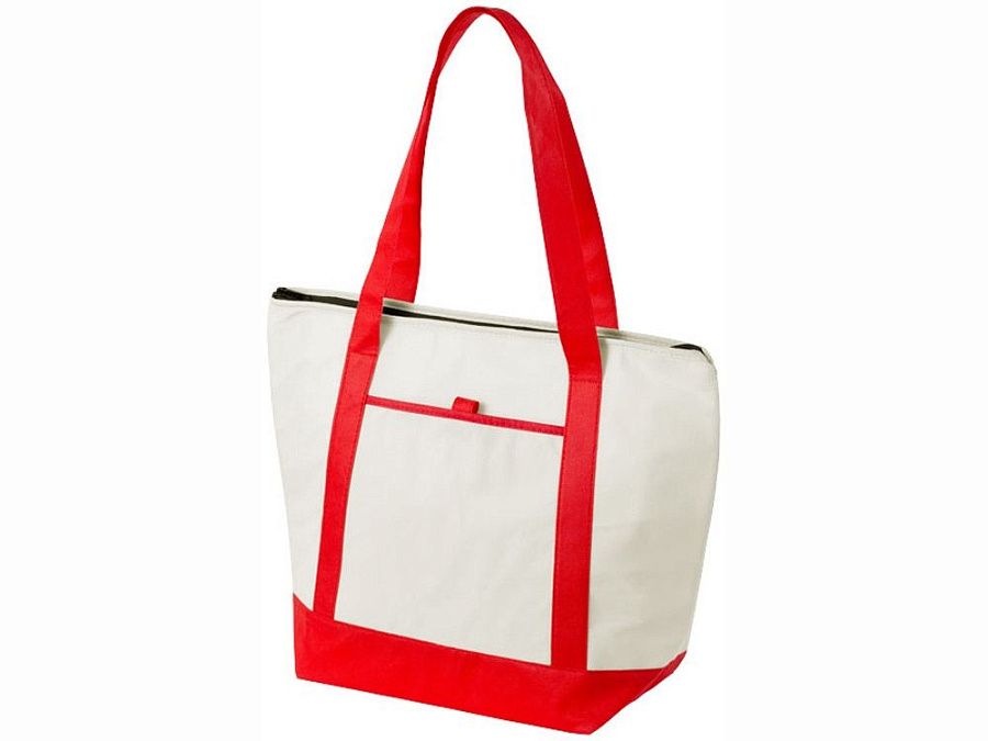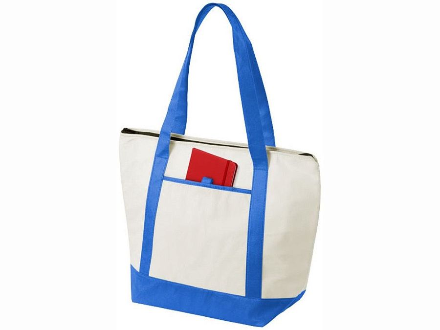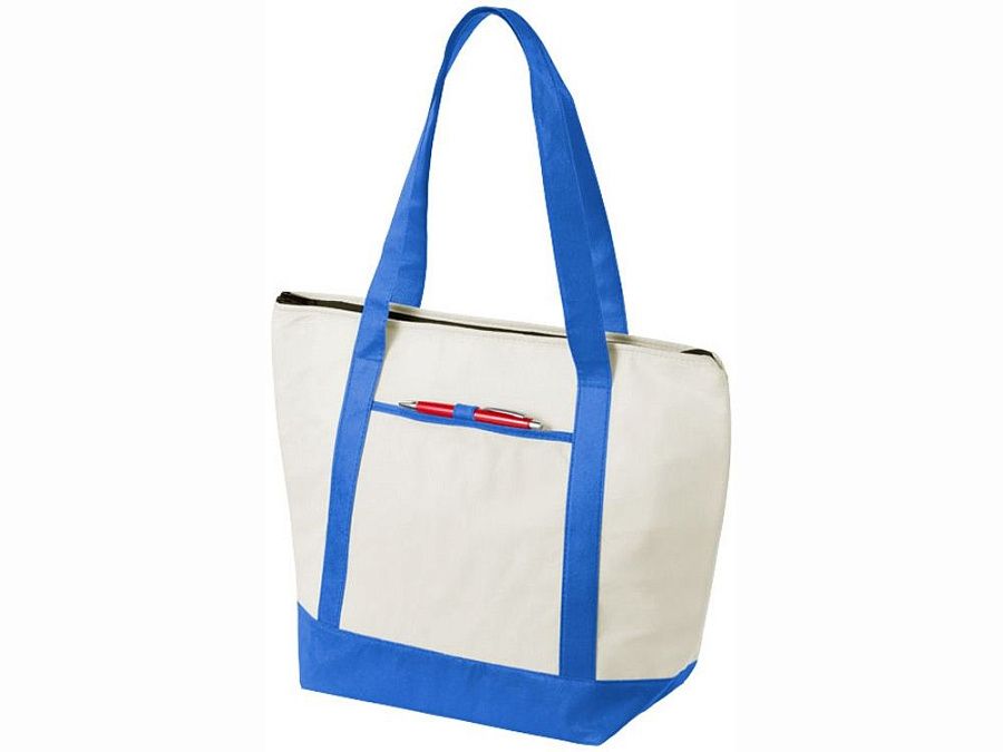 Нетканая сумка-холодильник Lighthouse. Основное отделение на молнии с двойными ручками. Высота ручек 23,5 см. Открытый передний карман с держателем для ручки. Аксессуары не включены. Нетканый полипропилен 80 г/м².