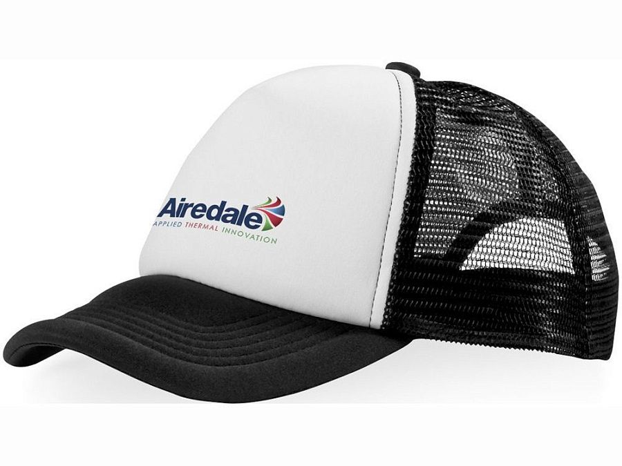 Кепка из 5 панелей Trucker. Оригинальная кепка на окружность головы 58 см с передней поролоновой частью, пластиковой сеткой сзади и пластиковой застежкой. Эта кепка полностью соответствует требованиям к соединениям AZO, формальдегиду и ПХФ. Полиэстер и поролон.