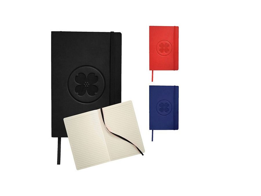 Классический блокнот с мягкой обложкой. Блокнот с мягкой на ощупь обложкой (ориентир размер А5) с эластичной застежкой, закладкой, кармашком для заметок внутри и 80 листов линованной бумаги (80 г/м²). Термо ПУ.