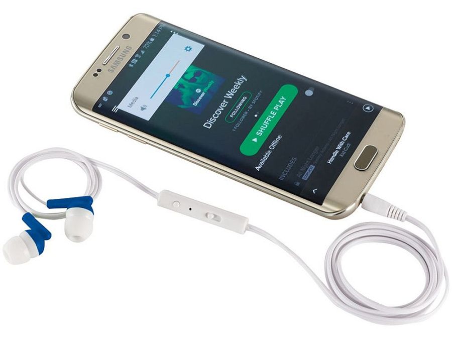 Наушники "Earbuds" включают в себя встроенный микрофон и регулятор громкости, которые позволяют принимать звонки и управлять музыкой. Длина кабеля 1,20м. Складываются в удобный пластиковый контейнер с карабином, на котором удобно делать нанесение.