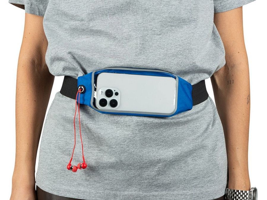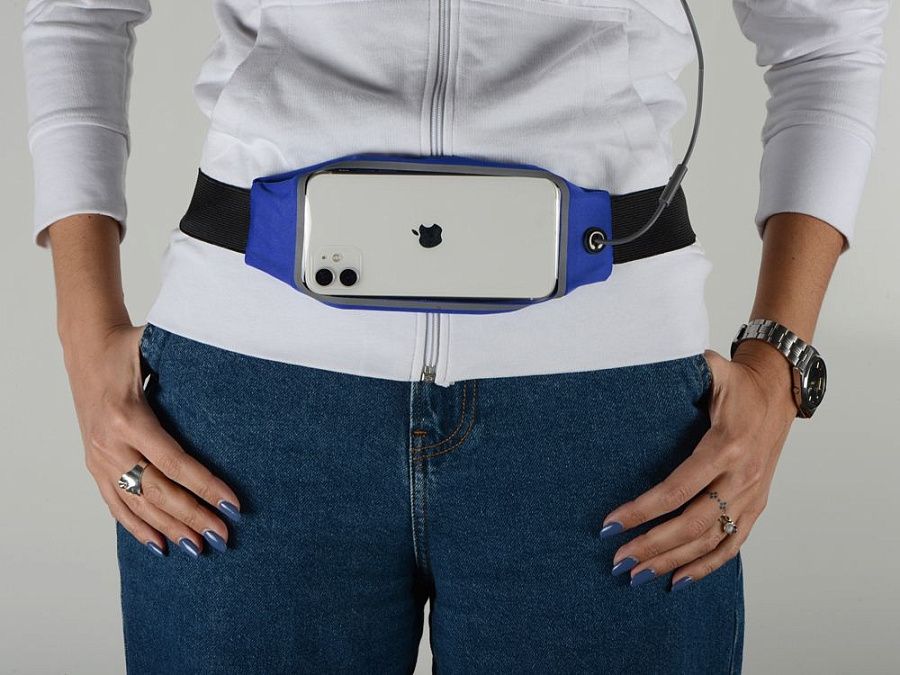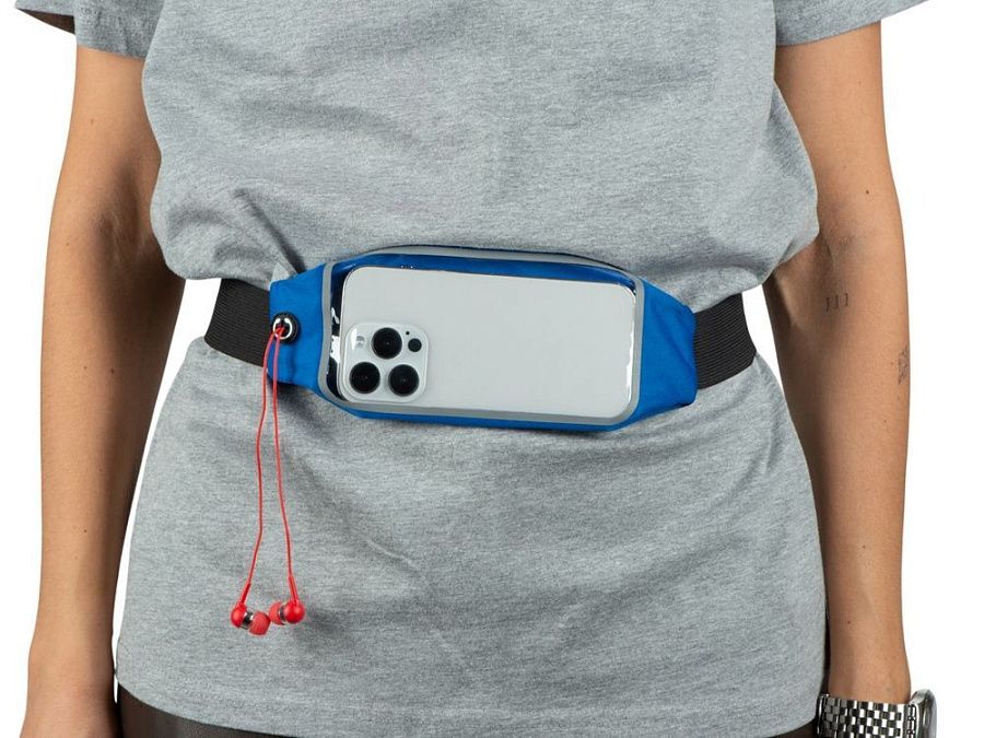 Сумка на пояс с отделением для смартфона размером до 16 х 8 см и выходом для наушников.