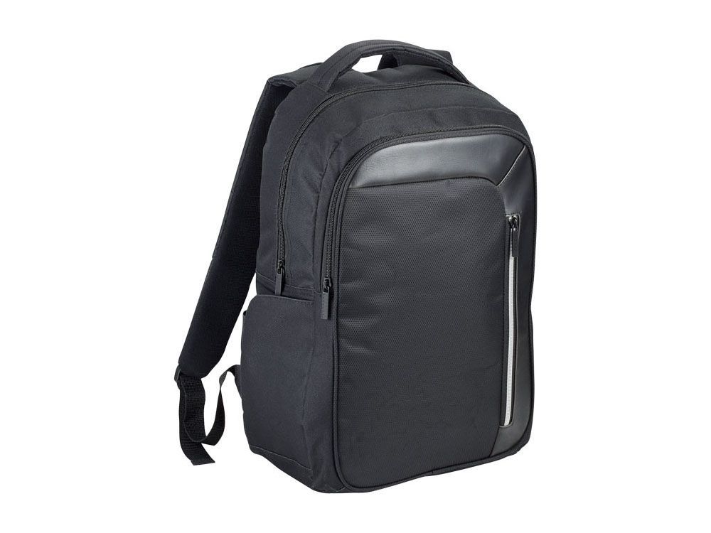 Рюкзак Vault для ноутбука 15.6" с защитой RFID. Изящный, современный рюкзак для ноутбука 15,6 " с большим передним карманом на молнии с карабином для ключей, и скрытым карманом с защитой RFID, чтобы защитить ваши карточки и паспорт от кражи личных данных. Большое основное отделение вмещает ноутбук 15,6" и специальный карман для IPad или планшета. Плотная спинка. Передняя вертикальная молния разработана, чтобы дать вам быстрый доступ к переднему карману. 2 дополнительных боковых кармана для большего места, регулируемые, мягкие ремни рюкзака позволят прикрепить к ним дополнительные аксессуары. Ручка вверху и стропа для крепления к чемодану. 600D полиэстер с акцентами из ПУ винила.
